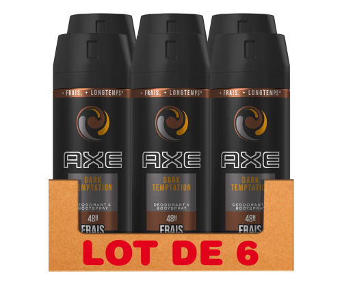 ¡Déjate tentar! Axe Dark Temptation es el desodorante en spray ideal para chicos que buscan frescura, confianza y un toque irresistible de chocolate. Este pack trae 6 sprays de 150ml para que nunca te falte tu fragancia favorita. Perfecto para el día a día y para llevar siempre contigo.