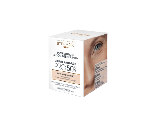 ¡Dile adiós a las arrugas y saluda a una piel más firme! La crema antiedad Pro 50 de Byphasse es tu aliada para redensificar, hidratar y devolverle vida a tu rostro. Perfecta para quienes buscan resultados visibles sin complicaciones. Textura ligera, efecto wow.