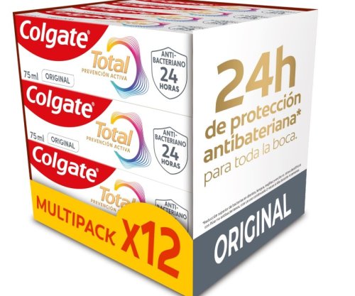 ¡Dientes limpios y sonrisa fresca para todo el año! Este pack de 12 pastas de dientes Colgate Total Prevención Activa es perfecto para quienes buscan protección completa contra caries, placa y mal aliento. Ideal para compartir en casa o tener siempre de repuesto. ¡Cuida tu boca y ahorra a lo grande!