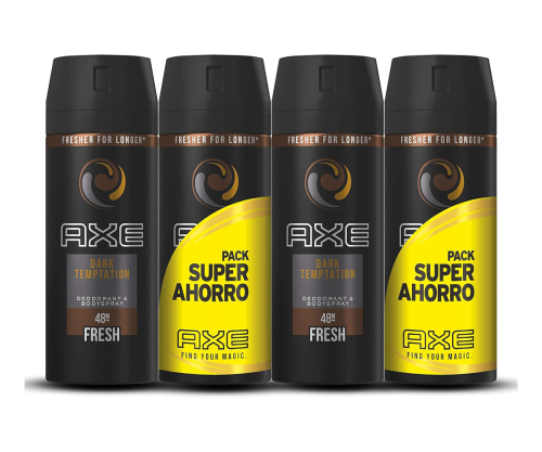 ¡Atrévete a oler irresistible todo el día! Este pack de 4 desodorantes Axe Dark Temptation te da frescura y protección con un aroma dulce y envolvente.