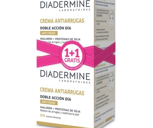 La Diadermine Crema Antiarrugas 2x1 Doble Acción Día es tu aliada si buscas una piel hidratada, protegida y con menos arrugas, ¡y además te llevas el doble! Su fórmula está pensada para combatir las primeras líneas de expresión, hidratar en profundidad y aportar elasticidad. Es perfecta para todo tipo de piel, incluso las más sensibles, ya que no deja sensación grasa ni pesada. Entre sus ingredientes clave encontrarás provitamina B5 y vitamina E, que ayudan a regenerar y proteger la piel frente a las agresiones diarias como el sol, el estrés o la contaminación. Su textura ligera la hace ideal para usar cada mañana, aportando frescura y suavidad. Si tienes entre 20 y 40 años y quieres prevenir o suavizar arrugas sin complicarte la vida, este es tu must diario. Además, al venir en formato 2x1, tienes crema para rato y a súper precio.