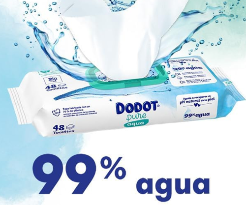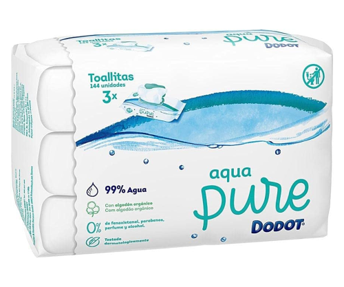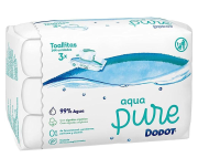 ¡Dile adiós a las irritaciones! Las toallitas Dodot Aqua Pure cuidan la piel de tu bebé con un 99% de agua y algodón orgánico.