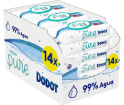 ¡Limpieza ultra suave y pura para los más peques! Las toallitas Dodot Pure Aqua están hechas con un 99% de agua y algodón premium, perfectas para pieles delicadas.