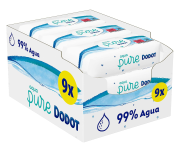 Las Dodot Pure Aqua Toallitas para Bebé son la opción más natural y delicada para limpiar y mimar la piel, especialmente la de los más pequeños.