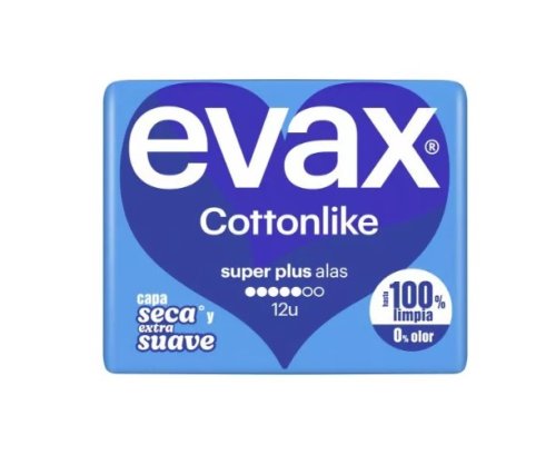 Las compresas Evax Cottonlike Super Plus con alas son la solución definitiva para esos días en los que necesitas máxima protección sin perder comodidad. Gracias a su núcleo absorbente y su tacto tipo algodón, mantienen la humedad alejada de tu piel y te ayudan a sentirte limpia y seca durante horas. Son ideales para flujo abundante o para las noches, ya que su tamaño y alas ofrecen una sujeción extra y evitan escapes. Además, su diseño discreto y flexible se adapta a tu cuerpo, ¡ni notarás que las llevas! Sin perfumes y dermatológicamente testadas, son aptas para todo tipo de piel, incluso las más sensibles. Olvídate de incomodidades y vive tu día a tope, ¡incluso en los días más intensos!