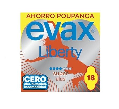 ¡Olvídate de las preocupaciones y vive tu día a tope con las compresas Evax Liberty Super! Máxima absorción, comodidad y libertad de movimiento para que nada te pare, ni siquiera en los días más intensos. Pack de 18 unidades, ideal para estar siempre preparada.