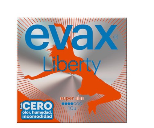 ¡Olvídate de las preocupaciones! Las compresas Evax Liberty Super con alas te dan máxima protección y comodidad durante tus días más intensos. Súper absorbentes, finas y flexibles, se adaptan a todos tus movimientos. Perfectas para sentirte libre y segura, vayas donde vayas.