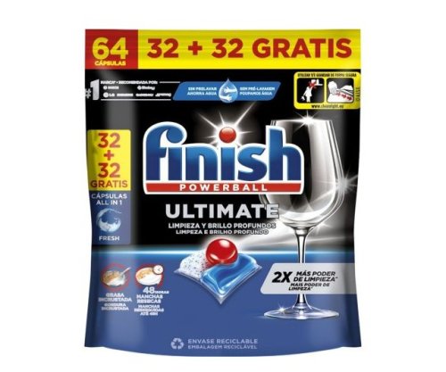 Finish Ultimate Power es la solución definitiva para quienes buscan resultados impecables sin complicaciones. Cada pastilla combina agentes limpiadores, abrillantadores y antigrasa, eliminando hasta la suciedad más difícil, como restos de huevo o té. Gracias a su tecnología de doble cámara, actúa en profundidad incluso en ciclos cortos, ahorrando agua y energía. Apta para todo tipo de vajilla y utensilios, protege el brillo de tus copas y cuida tu lavavajillas con cada uso. Ideal para quienes quieren rapidez, eficacia y un acabado profesional en casa. Perfecto para rutinas rápidas, cocinas con mucho movimiento y quienes no quieren perder tiempo fregando.