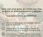 Abre el frasco y, con cuidado, vierte unas gotas del ambientador en el lugar que quieras perfumar: puedes usarlo en difusores, humidificadores, sobre textiles (como cortinas o alfombras), o incluso en el coche.