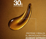Su fórmula combina filtros UVA/UVB de amplio espectro con aceites nutritivos que hidratan la piel y realzan el tono dorado natural, dejando un acabado satinado y nada graso.