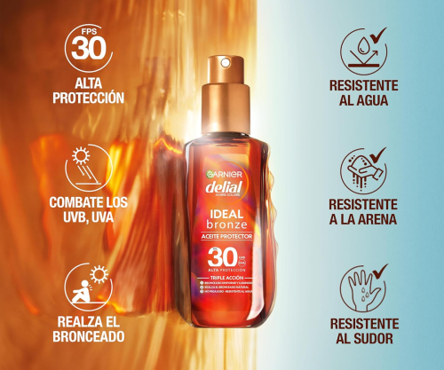 El Garnier Delial Ideal Bronze Aceite Protector Bronceador SPF 30 es tu aliado perfecto para conseguir ese bronceado de revista sin descuidar la protección solar.