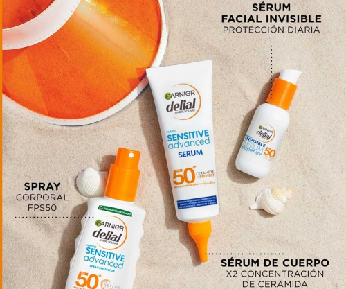 Este sérum ultraligero de Garnier Delial ofrece protección solar alta FPS 50, se absorbe rapidísimo y no deja rastro blanco ni sensación pegajosa.