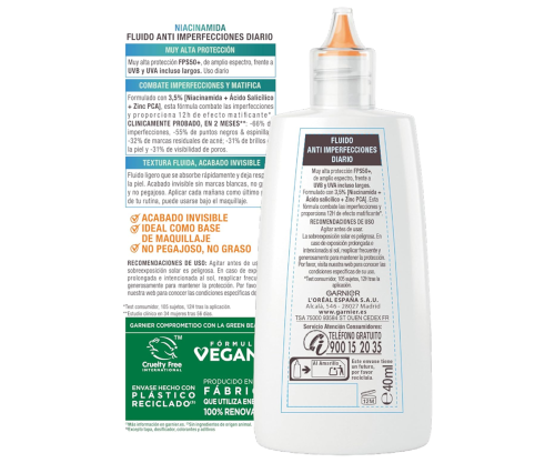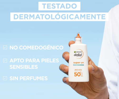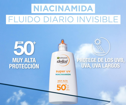 El Garnier Delial Super UV Niacinamida Fluido Solar Facial Anti-imperfecciones SPF 50 es la solución ideal para quienes quieren proteger su piel del sol sin renunciar a un cuidado extra contra las imperfecciones.