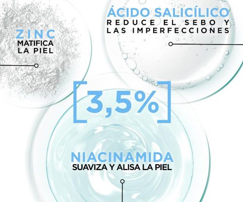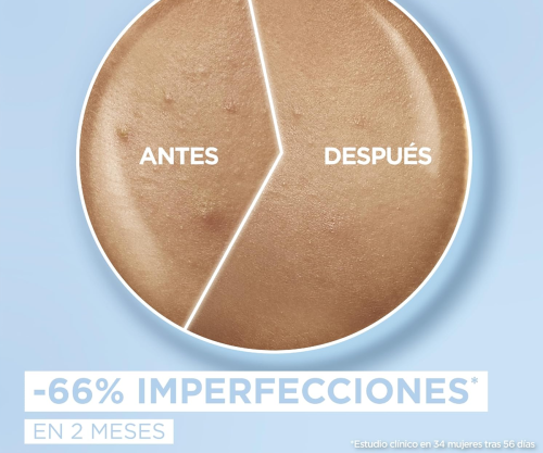 La niacinamida ayuda a reducir marcas, rojeces y granitos, mientras el SPF 50 protege de los rayos UVA/UVB y la luz azul, previniendo manchas y el envejecimiento prematuro.