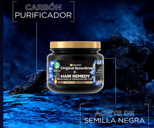 La Mascarilla Hidratación Carbón Magnético de Garnier Original Remedies es tu aliada si buscas un cabello limpio, fresco y sin sensación pesada.