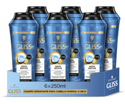 El Gliss Champú Aqua Revive es tu aliado si buscas hidratación sin apelmazar. Ideal para cabellos normales a secos, su fórmula con ácido hialurónico y extracto de algas marinas refresca y revitaliza desde el primer lavado. El ácido hialurónico ayuda a retener la humedad en la fibra capilar, mientras que las algas marinas aportan minerales esenciales para un pelo más fuerte y brillante. Es perfecto para quienes sienten el pelo apagado por el sol, las planchas o el estrés diario. Además, al venir en un pack de 6, tienes champú para rato o para compartir en casa. No contiene siliconas pesadas, así que tu pelo queda ligero, suelto y con ese efecto limpio que dura. Úsalo a diario o alterna con otros tratamientos según lo que tu melena pida. ¡Un básico para tu rutina si quieres un pelo sano, hidratado y con movimiento!