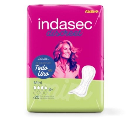 Las compresas Indasec Discreet Mini son la solución ideal para quienes buscan protección frente a pequeñas pérdidas de orina, sin renunciar a la comodidad ni a la discreción. Son ultrafinas, suaves y transpirables, por lo que se adaptan perfectamente a tu ropa interior y no se notan bajo la ropa. Gracias a su núcleo absorbente y a la tecnología que neutraliza los olores, te sentirás fresca y segura durante todo el día. Son perfectas para el día a día, para hacer deporte o para esos momentos en los que necesitas un extra de confianza. Aptas para pieles sensibles, sin perfumes irritantes y dermatológicamente testadas. Si buscas una rutina de autocuidado práctica, estas compresas encajan a la perfección en tu día a día: llévalas siempre en el bolso y úsalas cuando lo necesites, sin preocuparte por manchas o malos olores. Ideales para mujeres jóvenes y activas que quieren seguir su ritmo sin interrupciones.