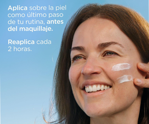 Reaplica cada 2 horas si vas a estar al sol mucho tiempo, después de nadar, sudar o secarte con la toalla.