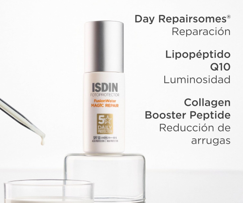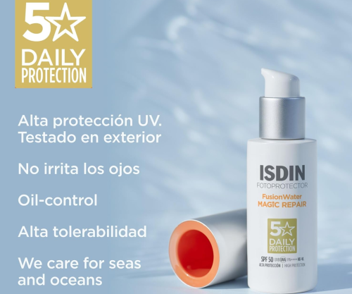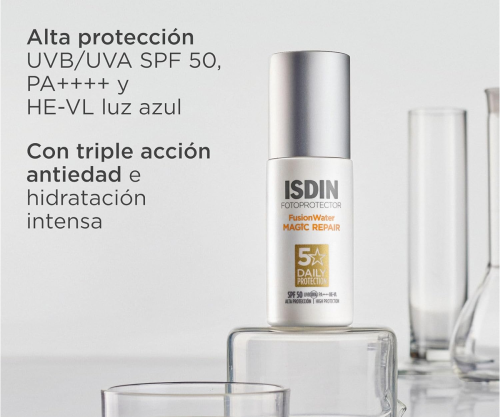 ISDIN Fotoprotector Magic Repair Fusion Water SPF 50 es el solar facial perfecto para quienes buscan máxima protección sin renunciar a la comodidad.