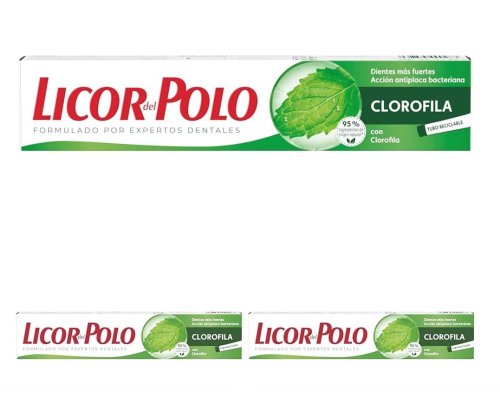 ¡Refresca tu sonrisa con el pack de 3 pastas de dientes Licor del Polo Clorofila! Su fórmula súper fresca limpia en profundidad, combate el mal aliento y deja una sensación de limpieza duradera. Ideal para quienes buscan una higiene bucal top y un aliento fresco todo el día.
