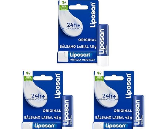 ¡Dile adiós a los labios secos con este pack de 3 bálsamos Liposan Original! Hidratación intensa, sensación suave y protección para tus labios todo el día. Perfecto para llevar uno en cada bolso y nunca quedarte sin ese toque de frescura.