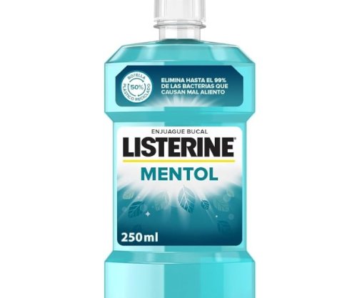 ¡Refresca tu boca al máximo! Listerine Mentol 250ml elimina el mal aliento y deja una sensación de frescor total. Perfecto para quienes quieren una higiene bucal rápida, eficaz y sin complicaciones. Ideal para llevar en la mochila o tener siempre a mano.