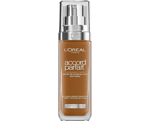 La base Accord Parfait 8.N de L'Oréal Paris es ideal para quienes buscan un maquillaje natural que se funda con la piel sin efecto máscara.