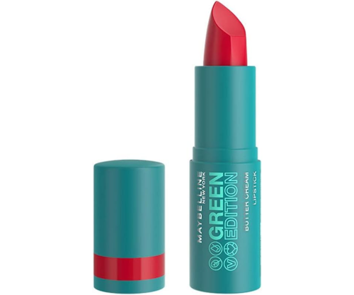 La Maybelline Green Edition Barra de Labios Buttercream en el tono 004 Maple es tu aliada si buscas un labial que combine color, hidratación y conciencia ecológica.