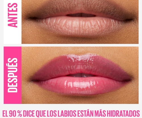 Su fórmula está enriquecida con ácido hialurónico, que ayuda a retener la hidratación y aporta un efecto volumen inmediato, dejando los labios más suaves y con aspecto saludable.