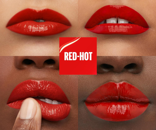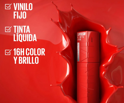 El Maybelline SuperStay Vinyl Ink en el tono 25 Red-Hot es el aliado perfecto para quienes buscan un labial rojo potente que aguante todo el día y noche.