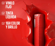 El labial líquido SuperStay Vinyl Ink de Maybelline en el tono 35 Cheeky te da hasta 16 horas de duración sin transferencias, ideal para días largos y noches épicas.