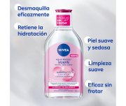 Limpia, desmaquilla e hidrata en un solo paso, sin dejar residuos ni sensación pegajosa.