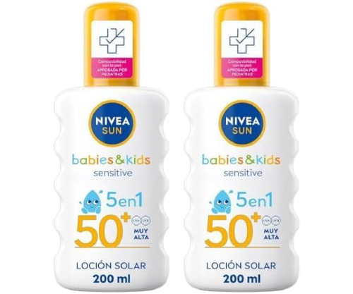 Protege la piel delicada de peques y no tan peques con este pack de 2 sprays solares NIVEA Sun Babies & Kids 5 en 1.