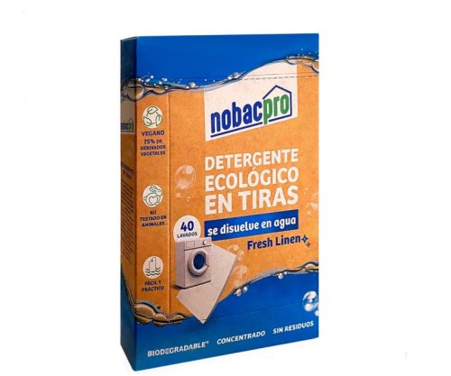 Las tiras de detergente ecológico NobacPro Fresh Linen son la revolución para tu colada: ligeras, compactas y súper fáciles de usar, ideales si buscas algo práctico y sin complicaciones. Además, ocupan muy poco espacio, así que di adiós a los botes pesados y a los derrames. Su fórmula ecológica es perfecta para pieles sensibles, ya que no contiene ingredientes agresivos ni tóxicos, y está libre de fosfatos, parabenos y colorantes. Funcionan en todo tipo de lavadoras y también a mano, incluso en agua fría, sin dejar residuos. El aroma Fresh Linen deja tu ropa con ese olor a limpio que encanta a todo el mundo. Si te importa el medioambiente y quieres un lavado eficaz sin renunciar a la comodidad, ¡este es tu detergente!